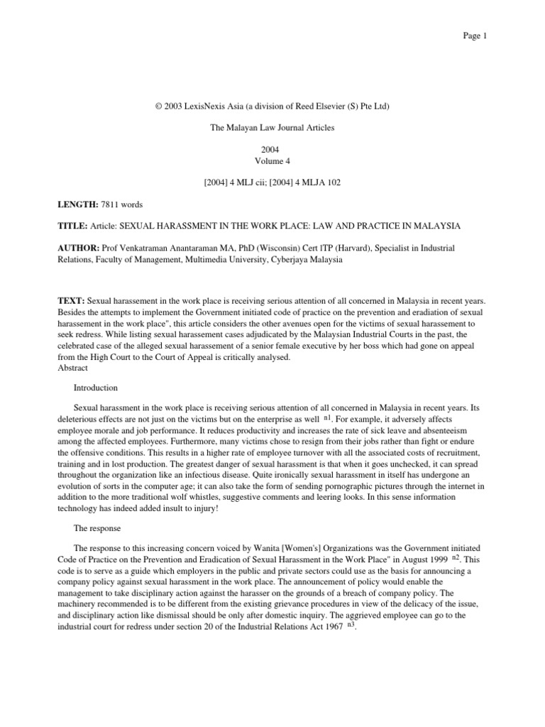 Throughout the last century we made great strides in including women in the work place. We also took steps to ensure men had the opportunity to with the state laws that protect oregon's workers from sexual harassment, federal laws also come into play to deal with this issue. Malaysia, law, sexual harassment, employees, employer. In the context of employment law, sexual harassment is categorised as a major misconduct that could warrant dismissal from employment, if the complaint is to be made by completing the sexual harassment form for lodging a complaint within legislative and common law framework of malaysia. Ogunyemi said that asuu was not in support of sexual harassment in any form, noting that if there was a law that addressed issues related to sexual.